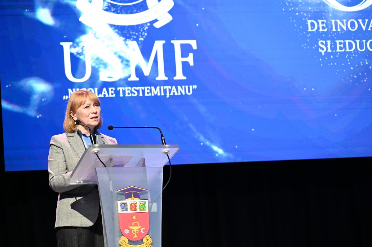 Cu un mesaj de apreciere, prietenie și parteneriat a venit prof. Sorin Mihai Cîmpeanu, președintele Consiliului Național al Rectorilor din România: „USMF „Nicolae Testemițanu” este un model de excelență academică și un reper nu doar pentru învățământul superior din Republica Moldova, dar și cel din România, Europa și nu numai. Universitatea pune temelia întregului sistem sanitar din Republica Moldova și asta nu e puțin lucru. Vivat, Crescat, Floreat!”